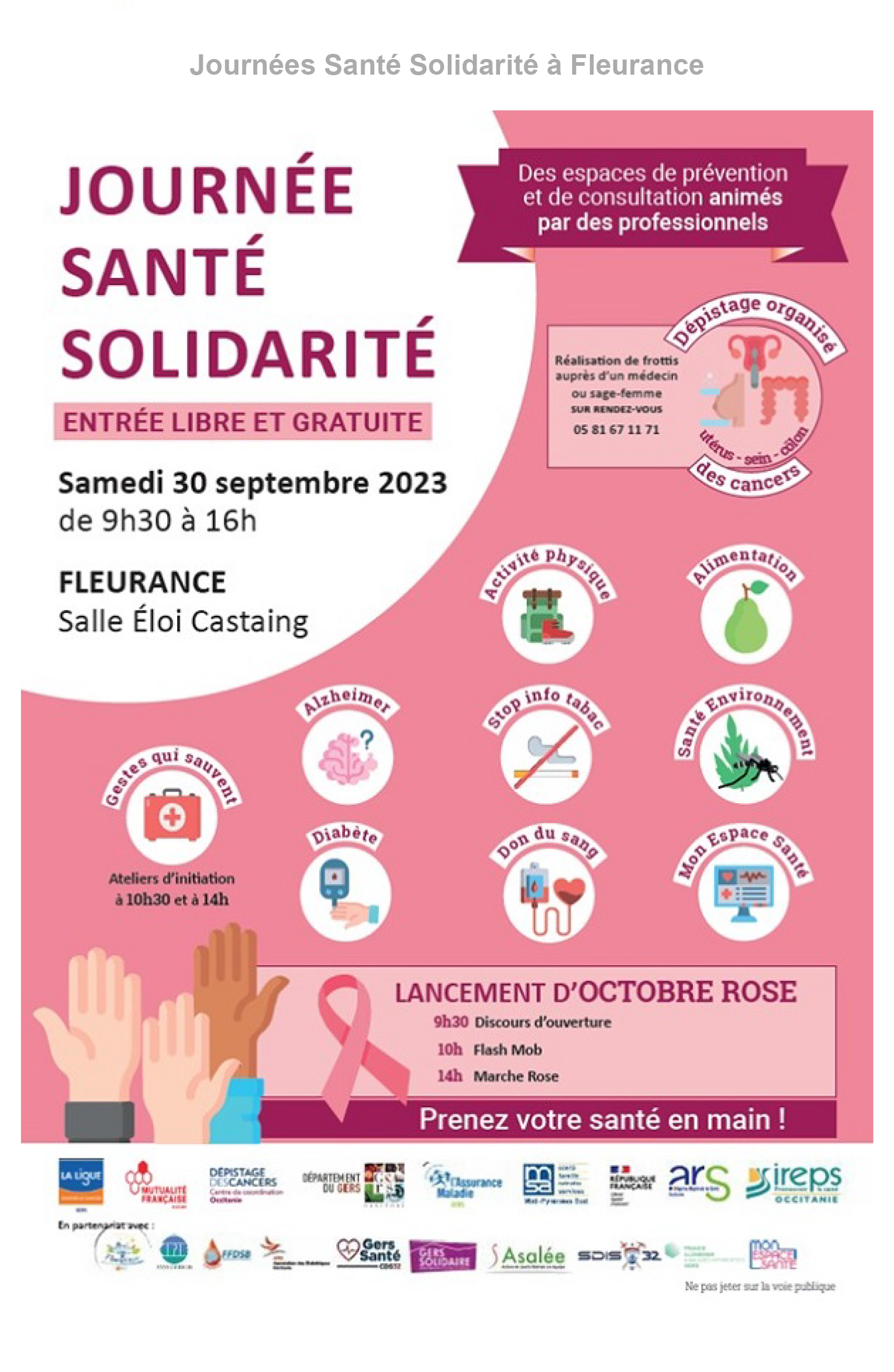 > Samedi 30 septembre "Journées Santé Solidarité à Fleurance"