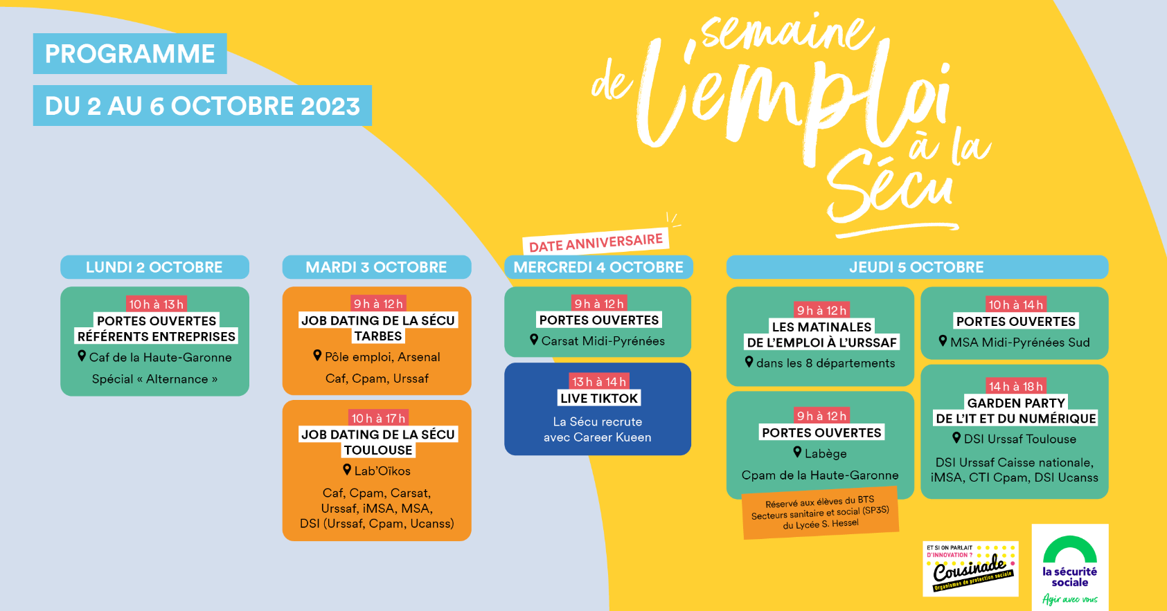Pour la première édition de la Semaine de l’emploi à la Sécu, nous vous proposons 4 jours d’évènements inédits !