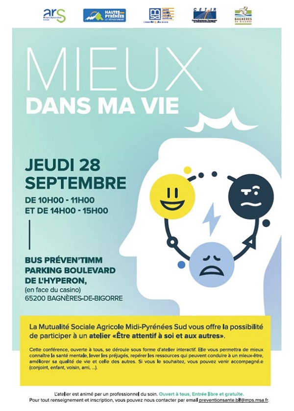 > Samedi 28 septembre ateliers "mieux dans ma vie"à Bagnères-de-Bigorre